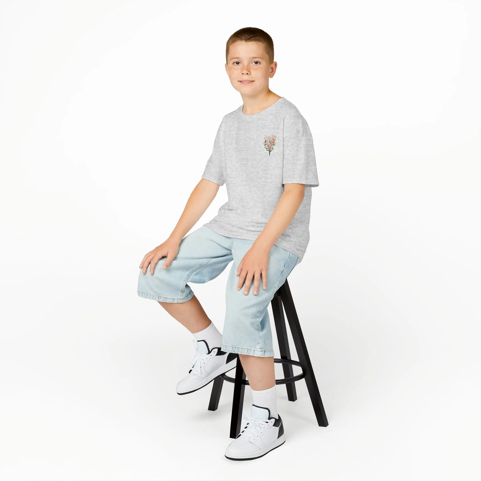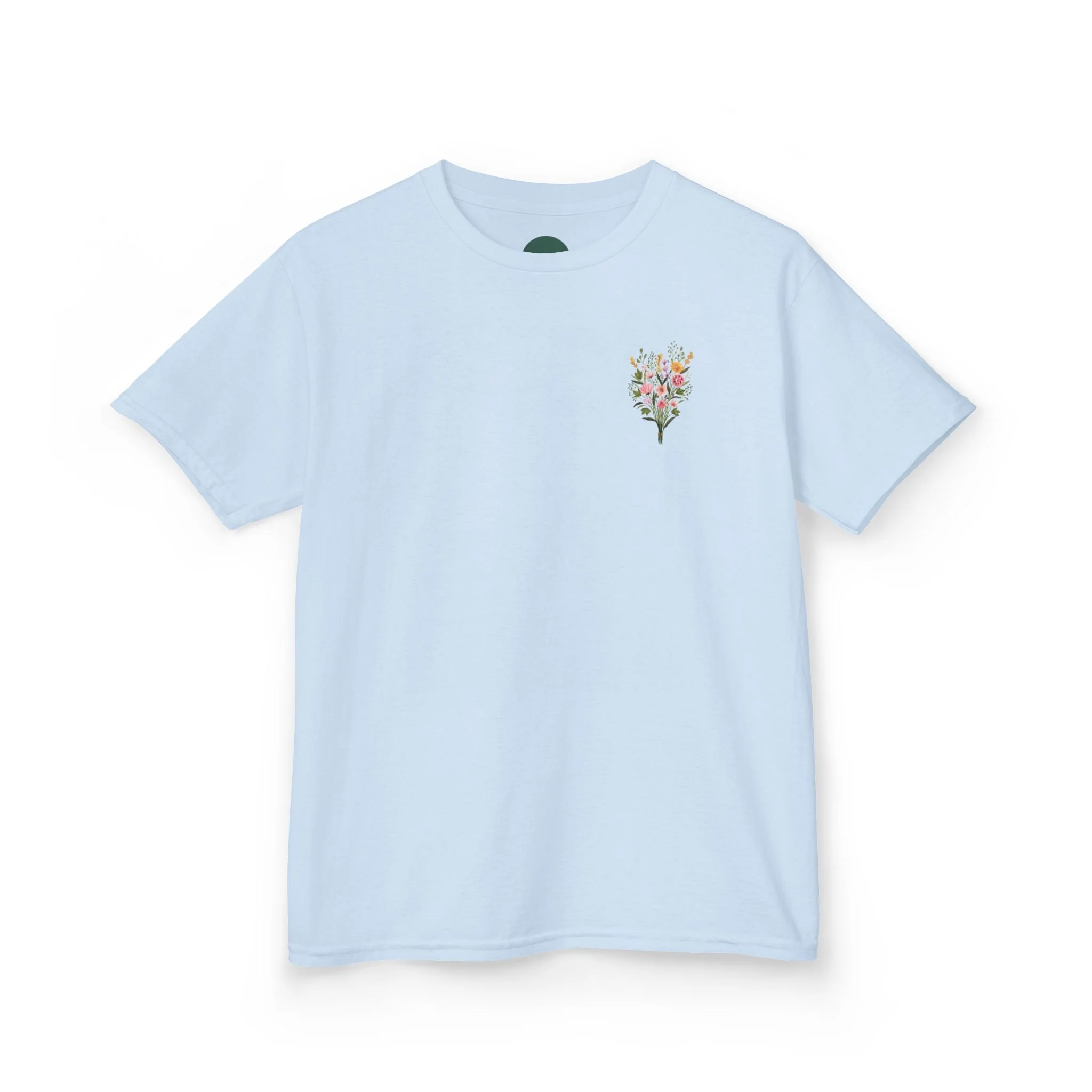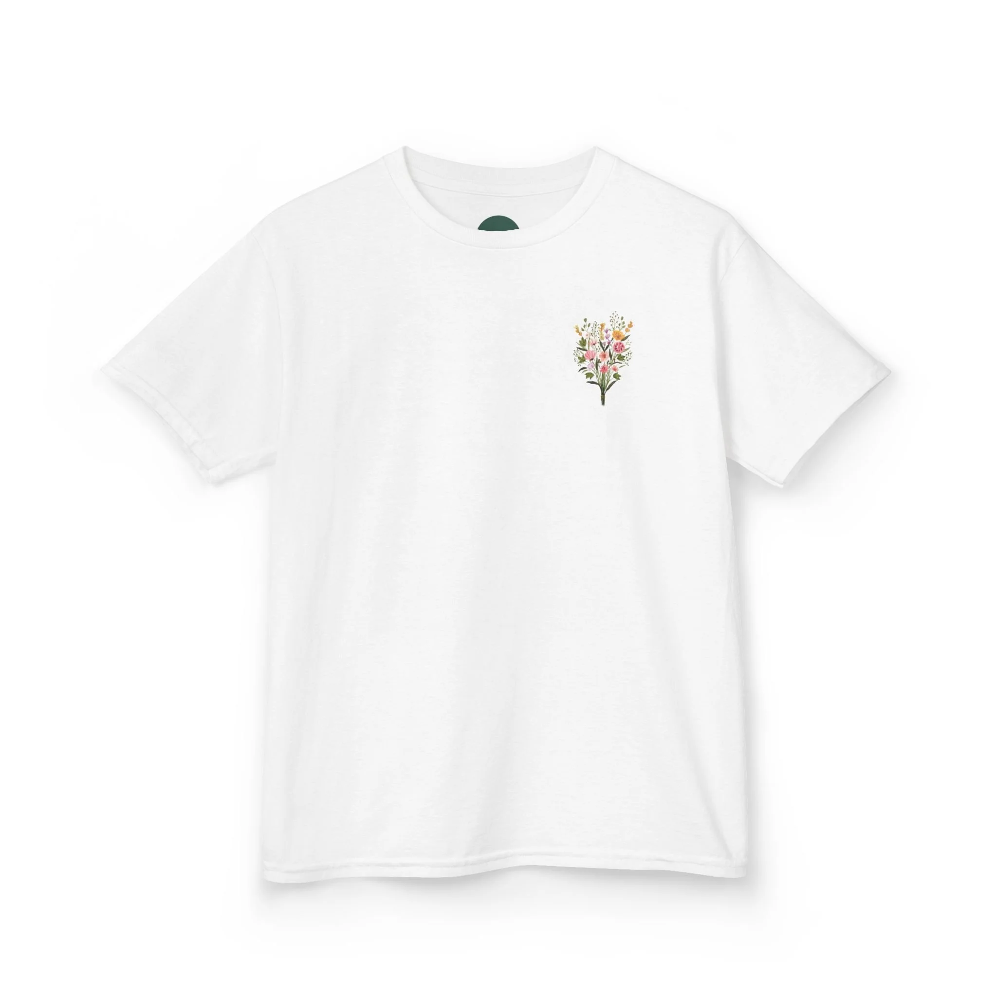 A soft, midweight kids tee that carries a gentle garden of watercolor blooms across the chest and back. The small floral bouquet on the front and the larger arrangement with subtle type on the back feel like a child’s secret garden—delicate, cheerful, and quietly confident. The crew neckline and classic cut let kids move freely while the breathable cotton keeps them comfortable through play, school, and lazy afternoons in the sun. Thoughtful details like a ribbed collar, shoulder tape, and tear-away label make this shirt easy to wear and care for, while Oeko‑Tex and REACH certifications ensure the fabric is safe for sensitive skin. The floral design brings a calm, creative touch to everyday outfits and pairs naturally with denim, skirts, or cozy layers for cooler days.