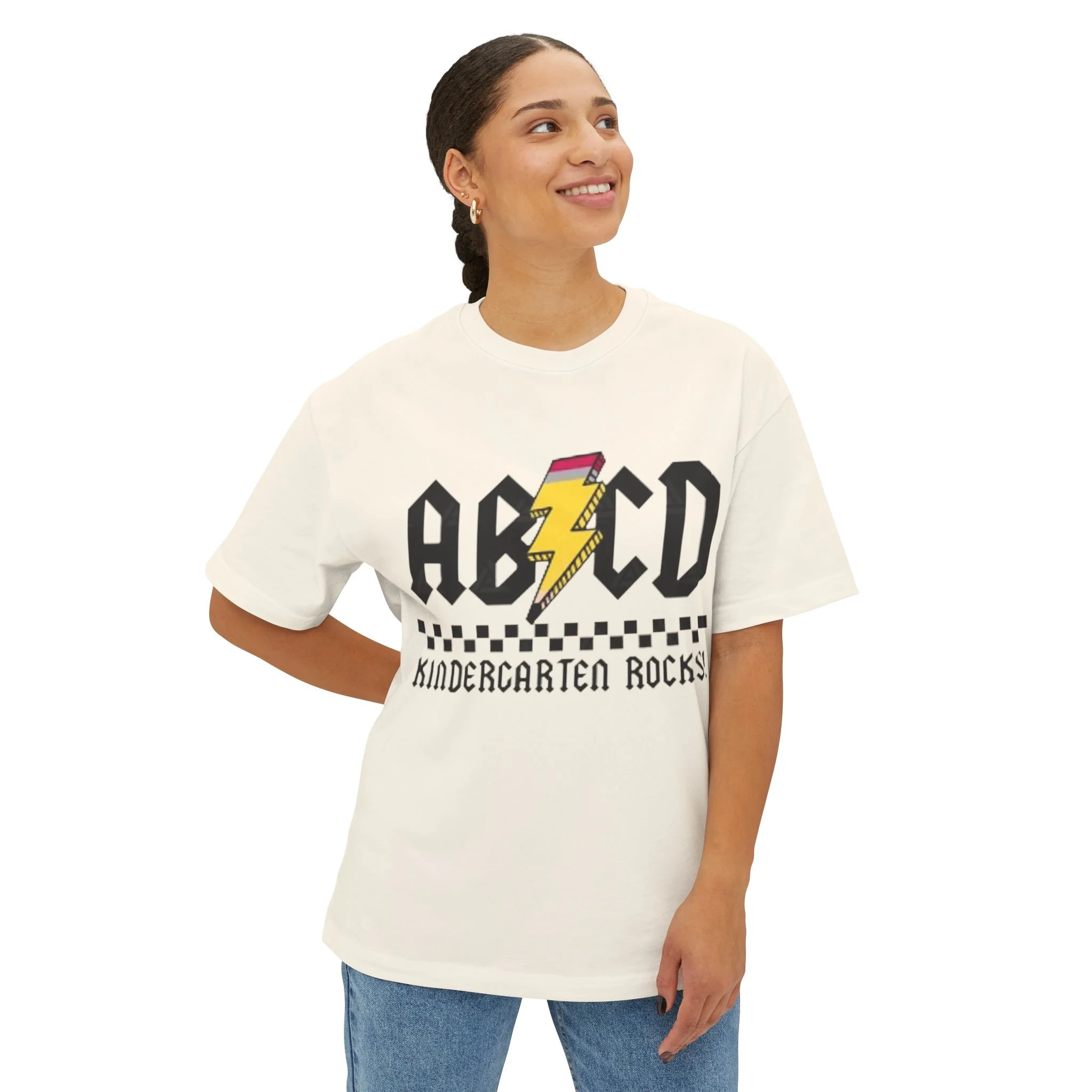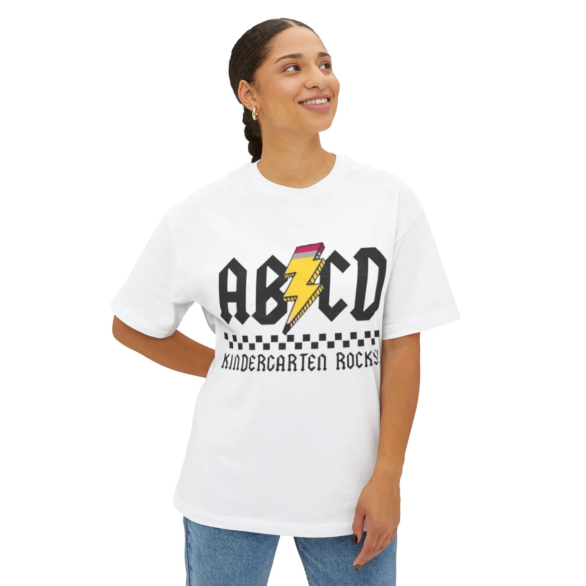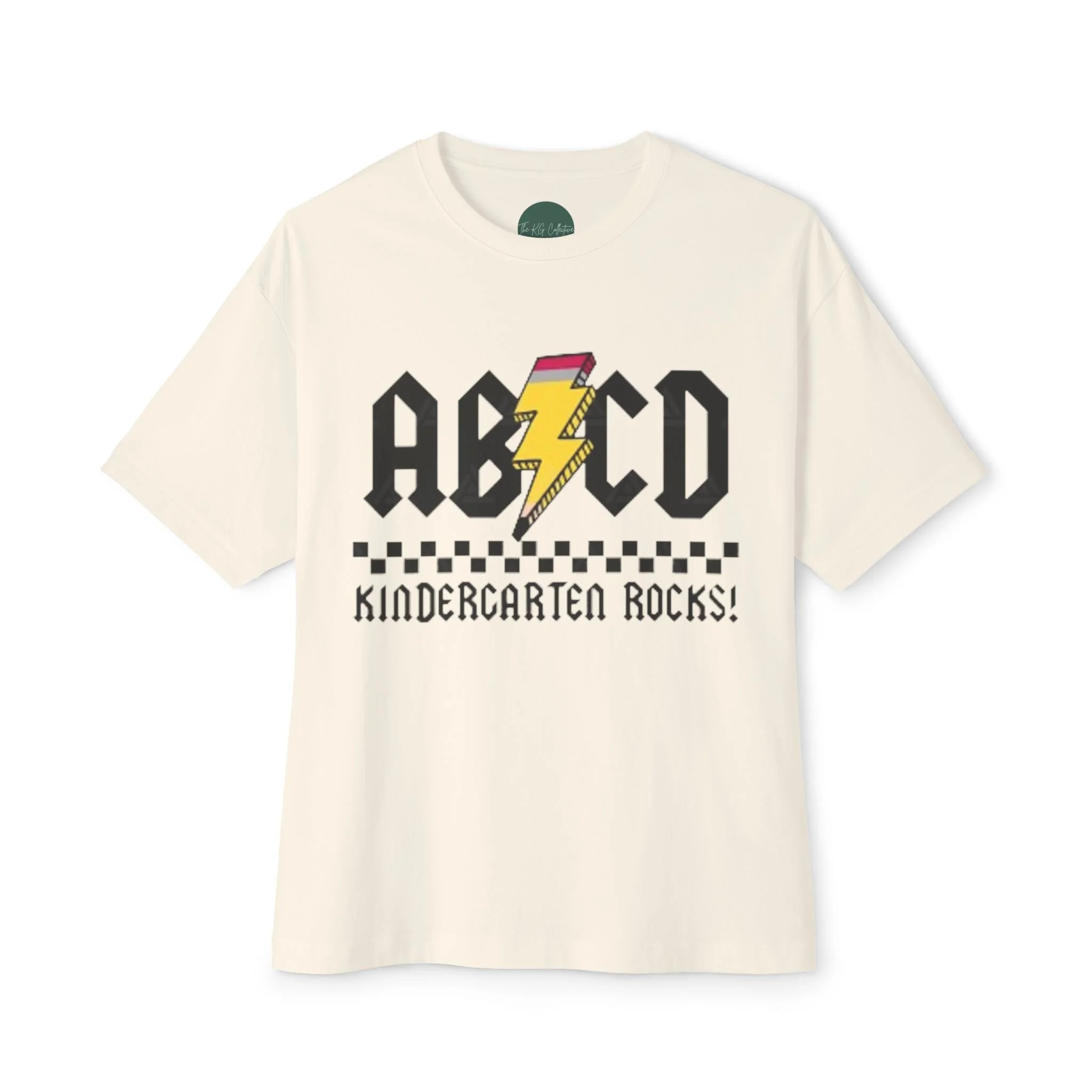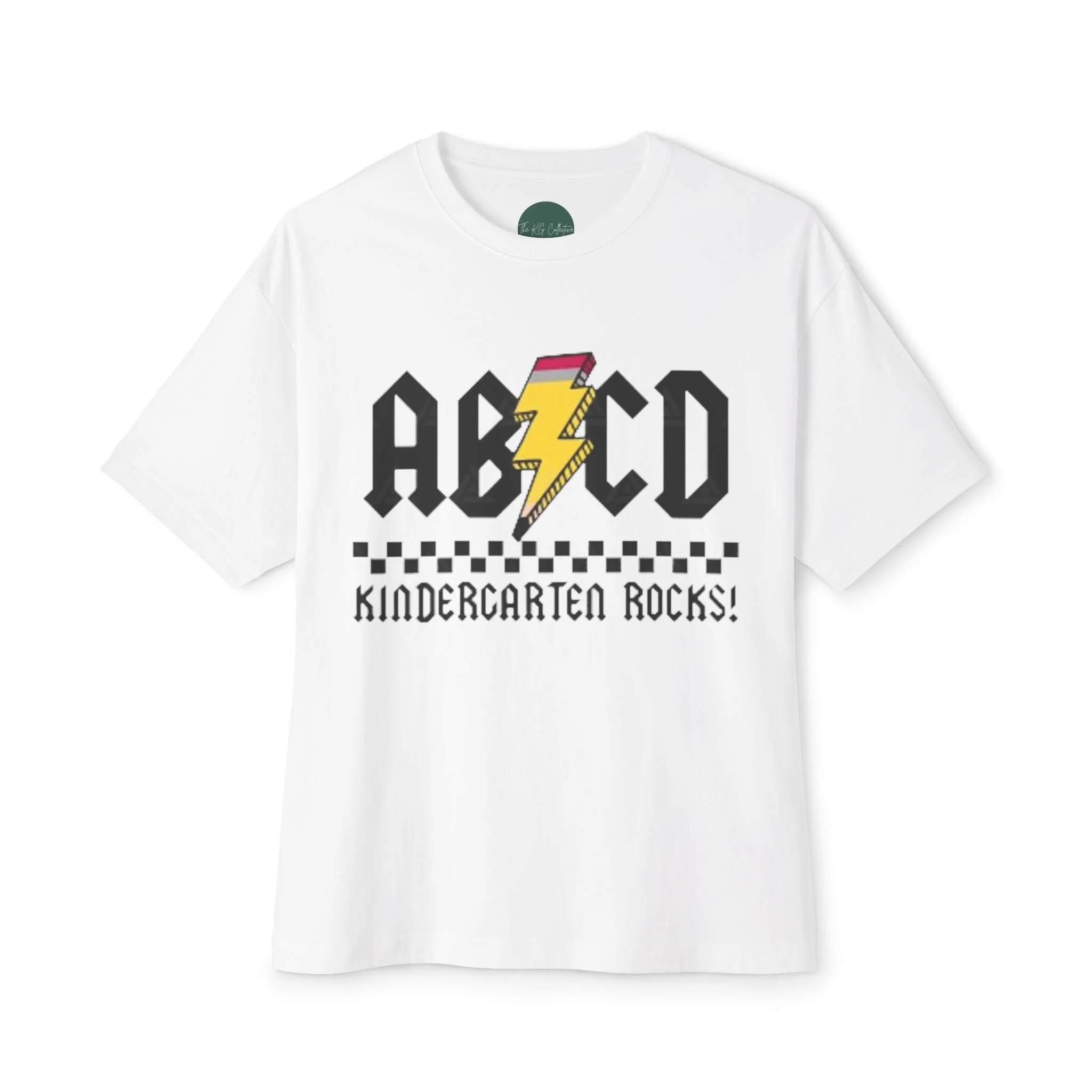 A roomy, lived-in tee that brings playful classroom energy to everyday wear. The bold, retro-inspired graphic — chunky collegiate letters split by a lightning bolt and a checkerboard trim — reads like a teacher’s rallying cry: K-inderGarten. Soft, breathable cotton and a relaxed, dropped-shoulder cut let you move through circle time, recess duty, and pick-up lines without fuss. It sits easily over leggings or jeans and wears like a favorite hand-me-down from day one. Wear it to parent-teacher mornings, casual school events, or on slow Saturdays when you want to celebrate the small, loud moments of early childhood.