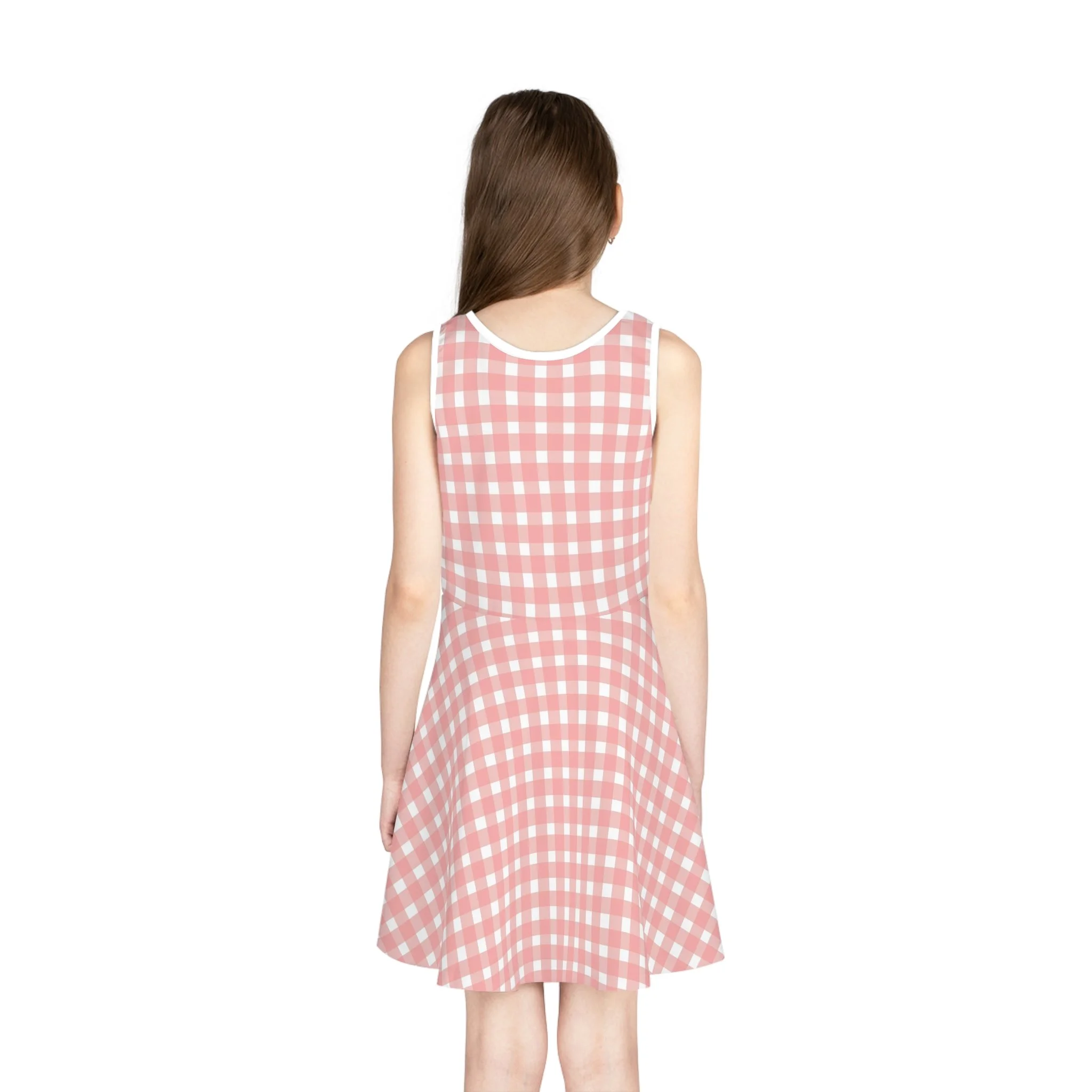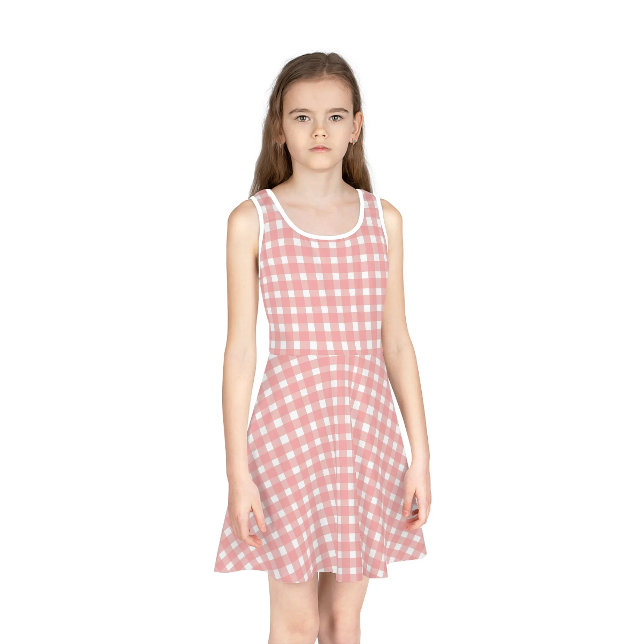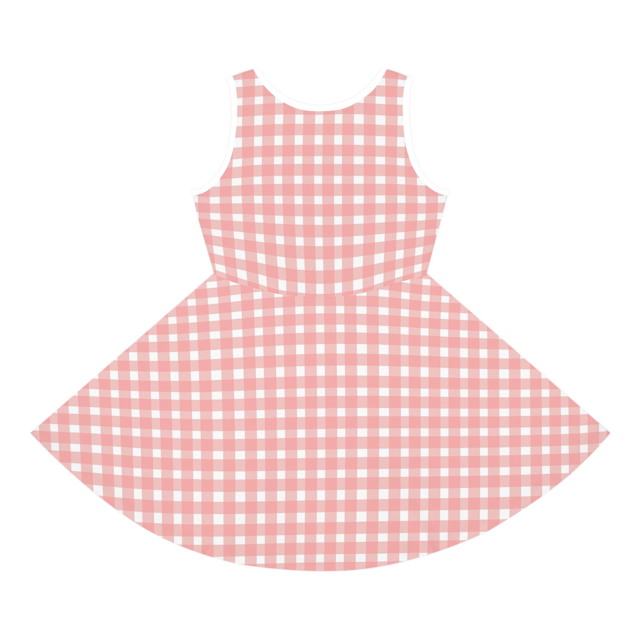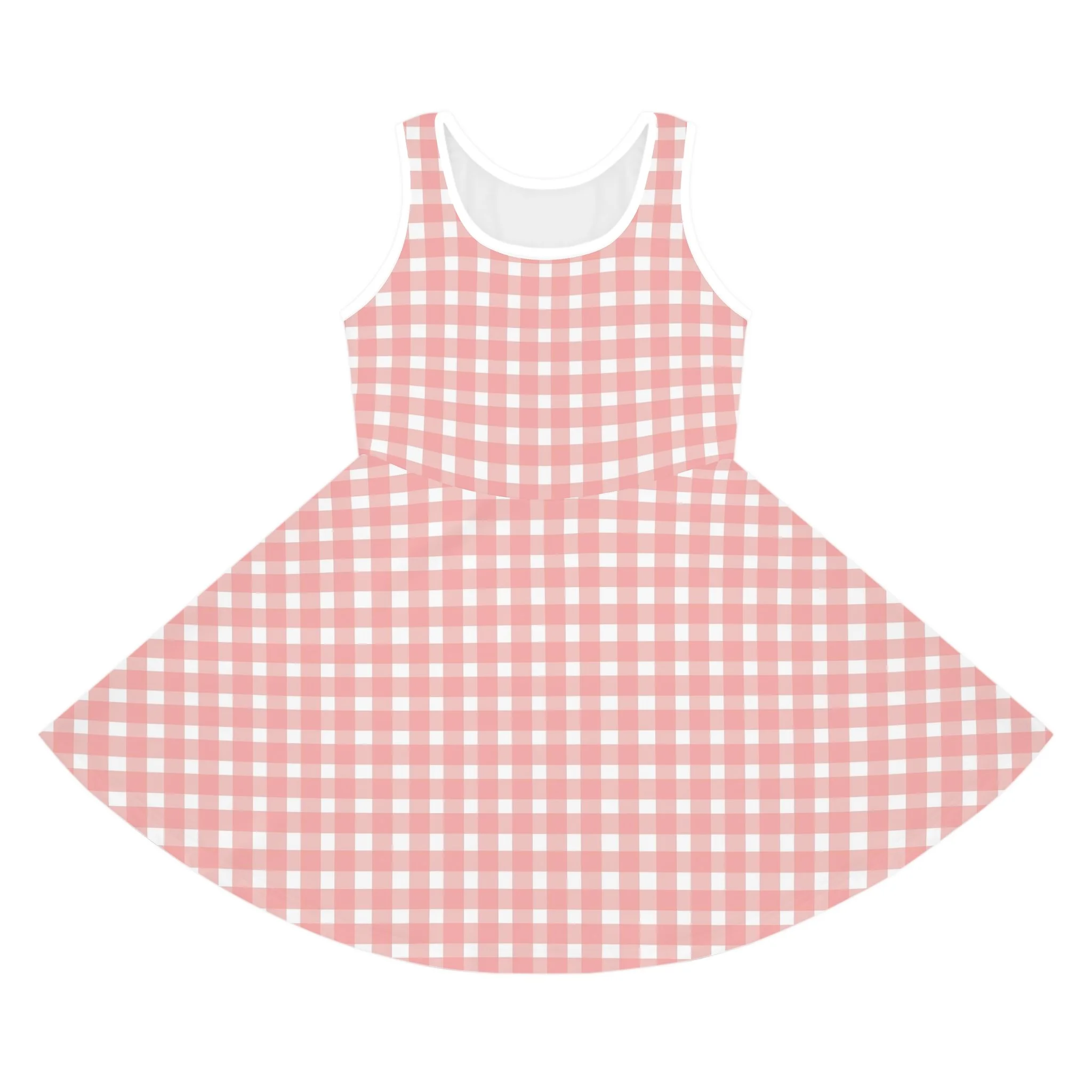 Pink Gingham Girls' Sundress — Sleeveless A-Line Summer Dress for Kids