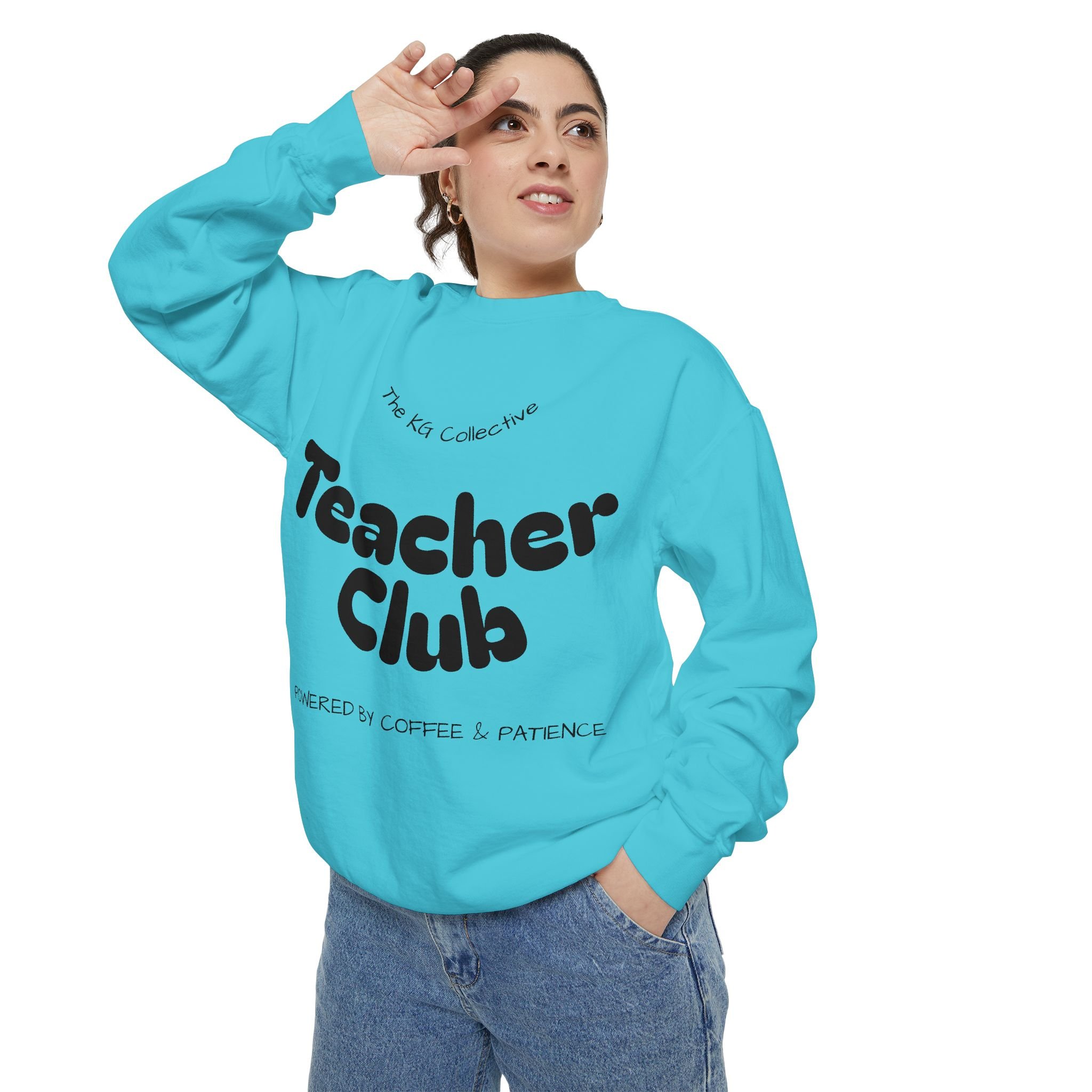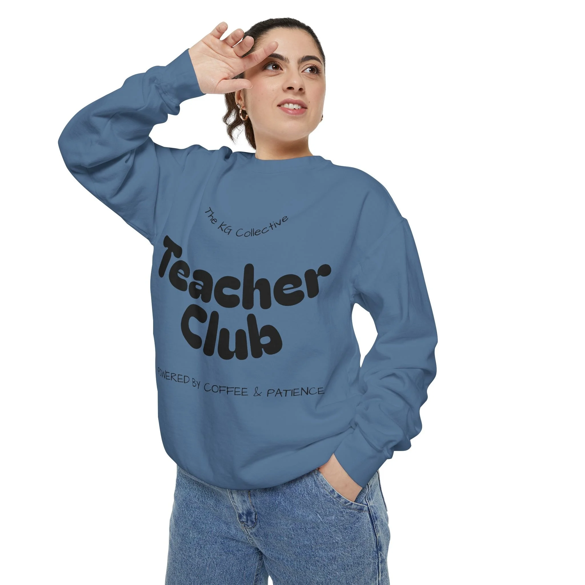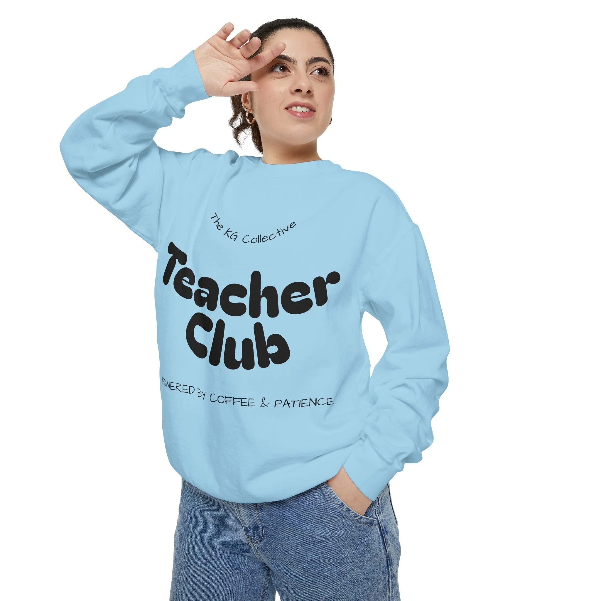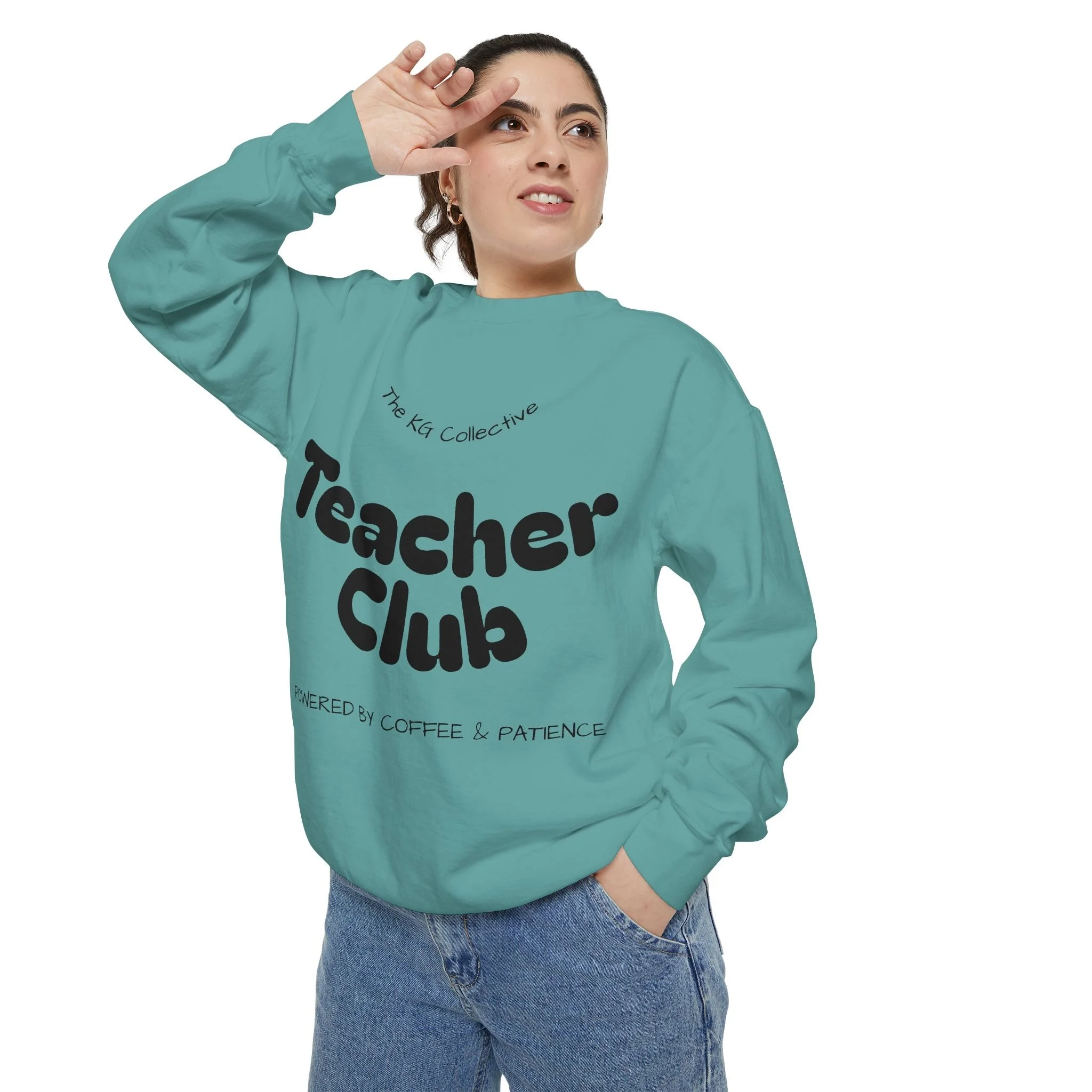 Teacher Club Sweatshirt — "Powered by Coffee & Patience" Cozy Crewneck for Educators